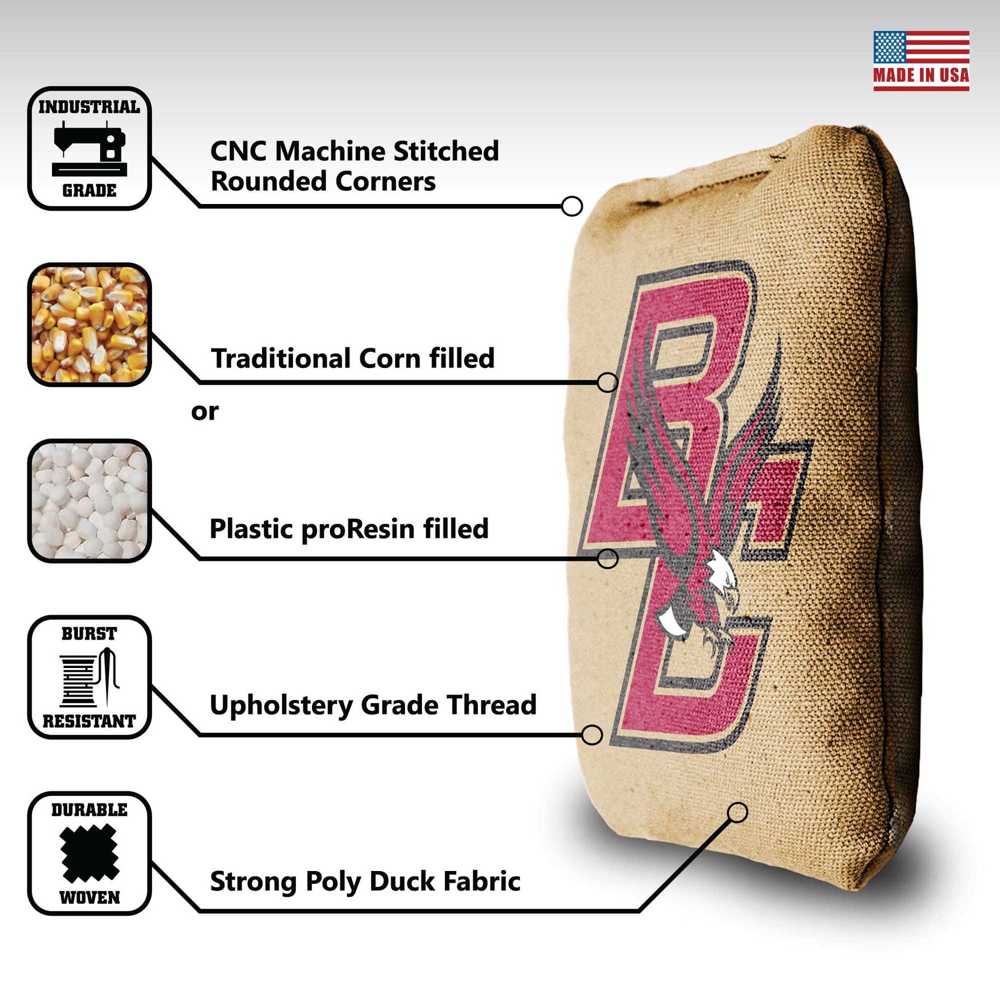 Show everybody your school's the best with your Boston College cornhole bags. These bags are essential and every point you score with them will feel like you’re helping your team to victory. Bring out your bags, chest bump your friends, and show your school pride!