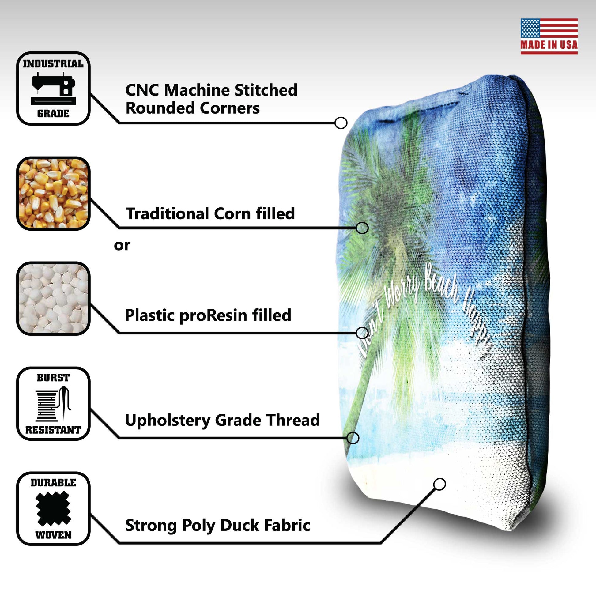 Get outside and have a good time! These cornhole bags are perfect for the beach. But, if you don’t have that, all you need is a twelve pack and a good imagination. Get away to that paradise and have some fun with these premium cornhole bags.