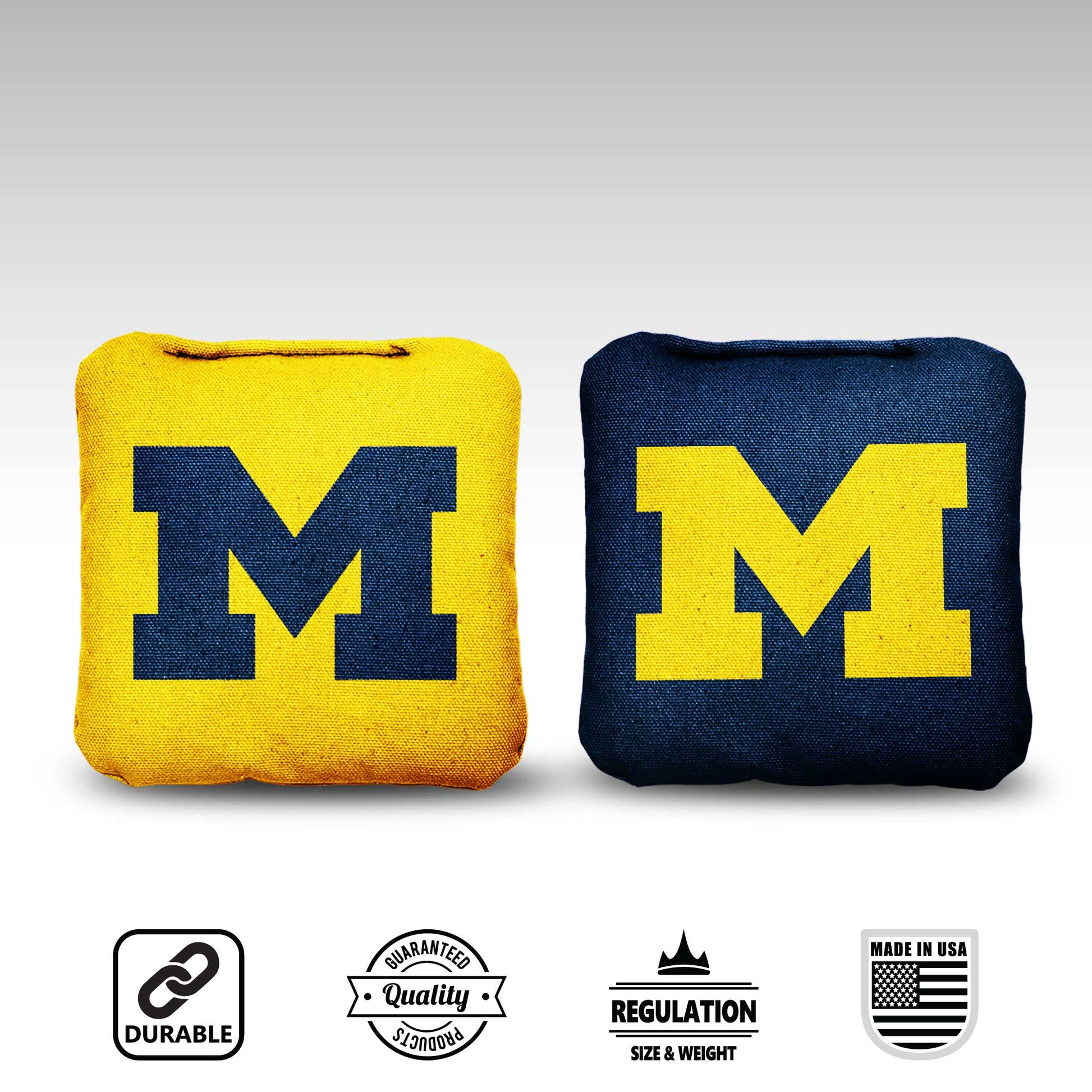 Show everybody your school's the best with your University of Michigan cornhole bags. These bags are essential and every point you score with them will feel like you’re helping your team to victory. Bring out your bags, chest bump your friends, and show your school pride!